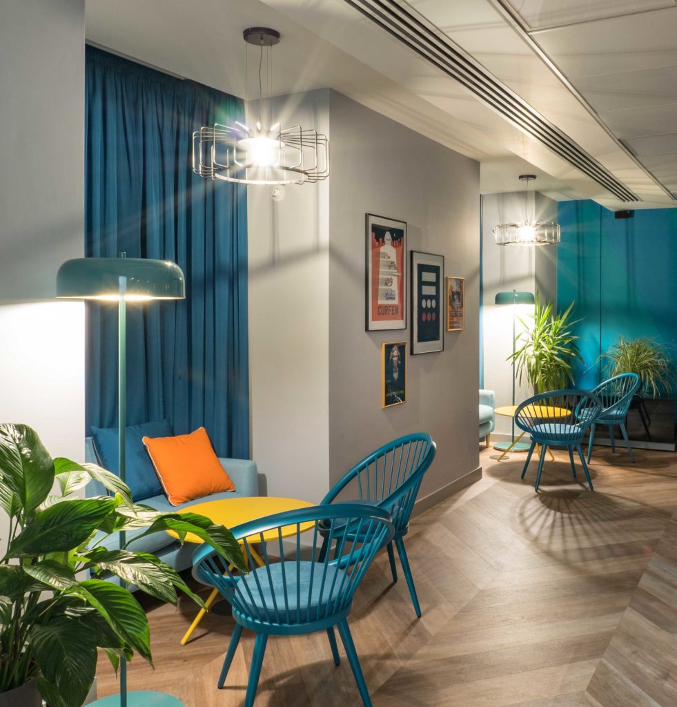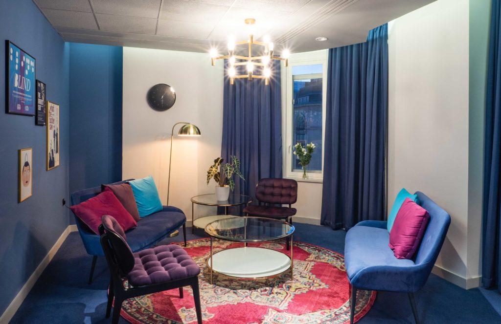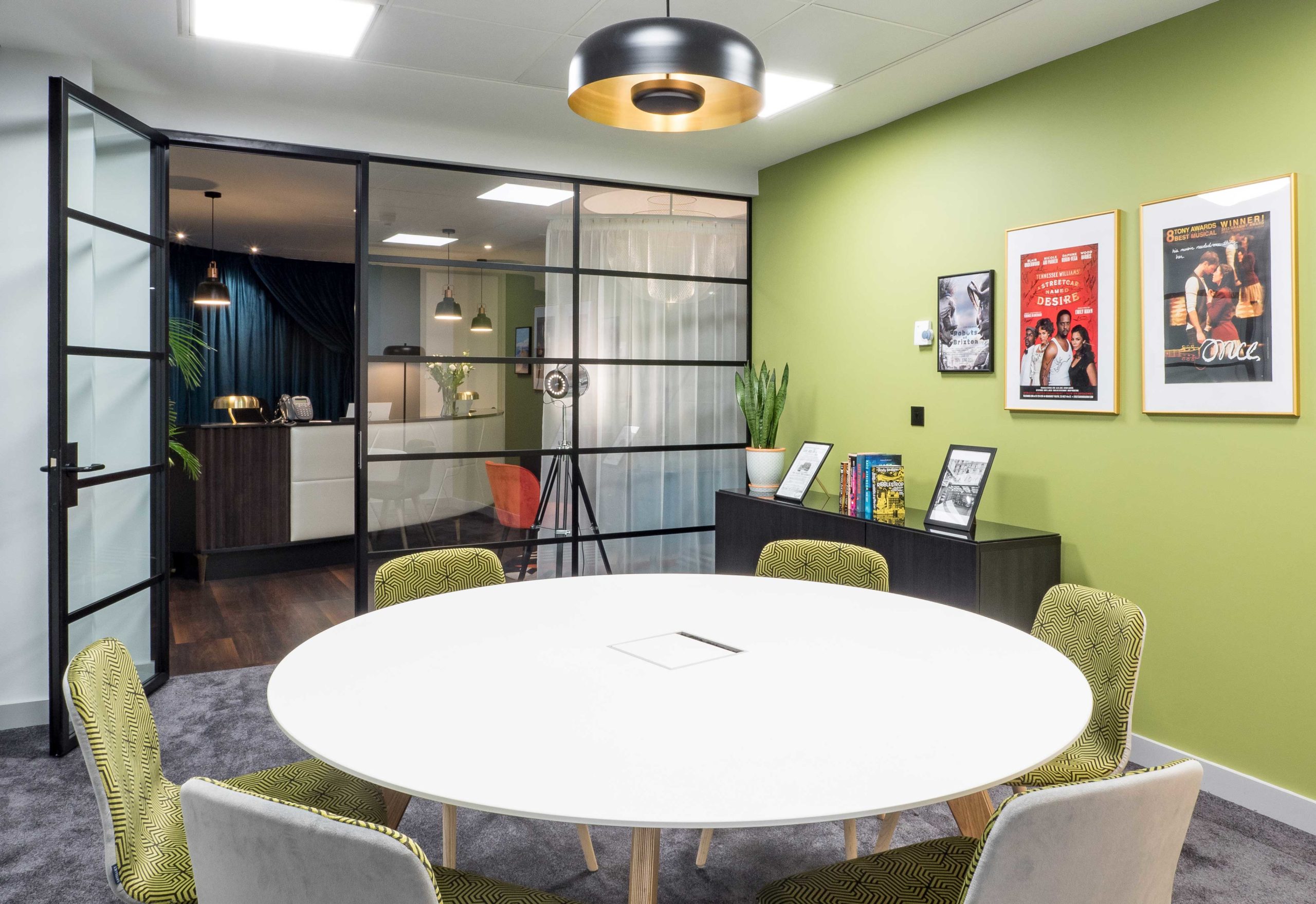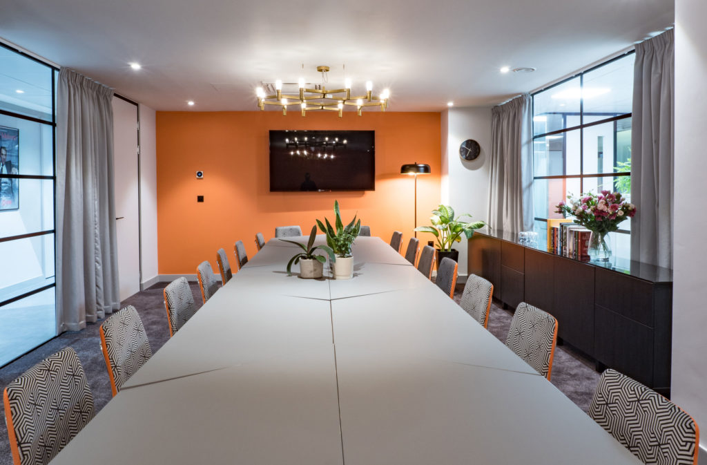 Boutique office interior located in Savoy Court; a prominent office residence on the south side of Strand Central London, adjacent to the famous Savoy Hotel. The 762 sq metre high end office interior was for the Film, TV & Theatre agency Casarotto Ramsay & Associates, the interior was required to reflect a dramatic theatrical quality, drawing on Casarotto Ramsay’s strong links to the theatre, whilst also utilising unique colour combinations best known by directors such as Wes Anderson.
